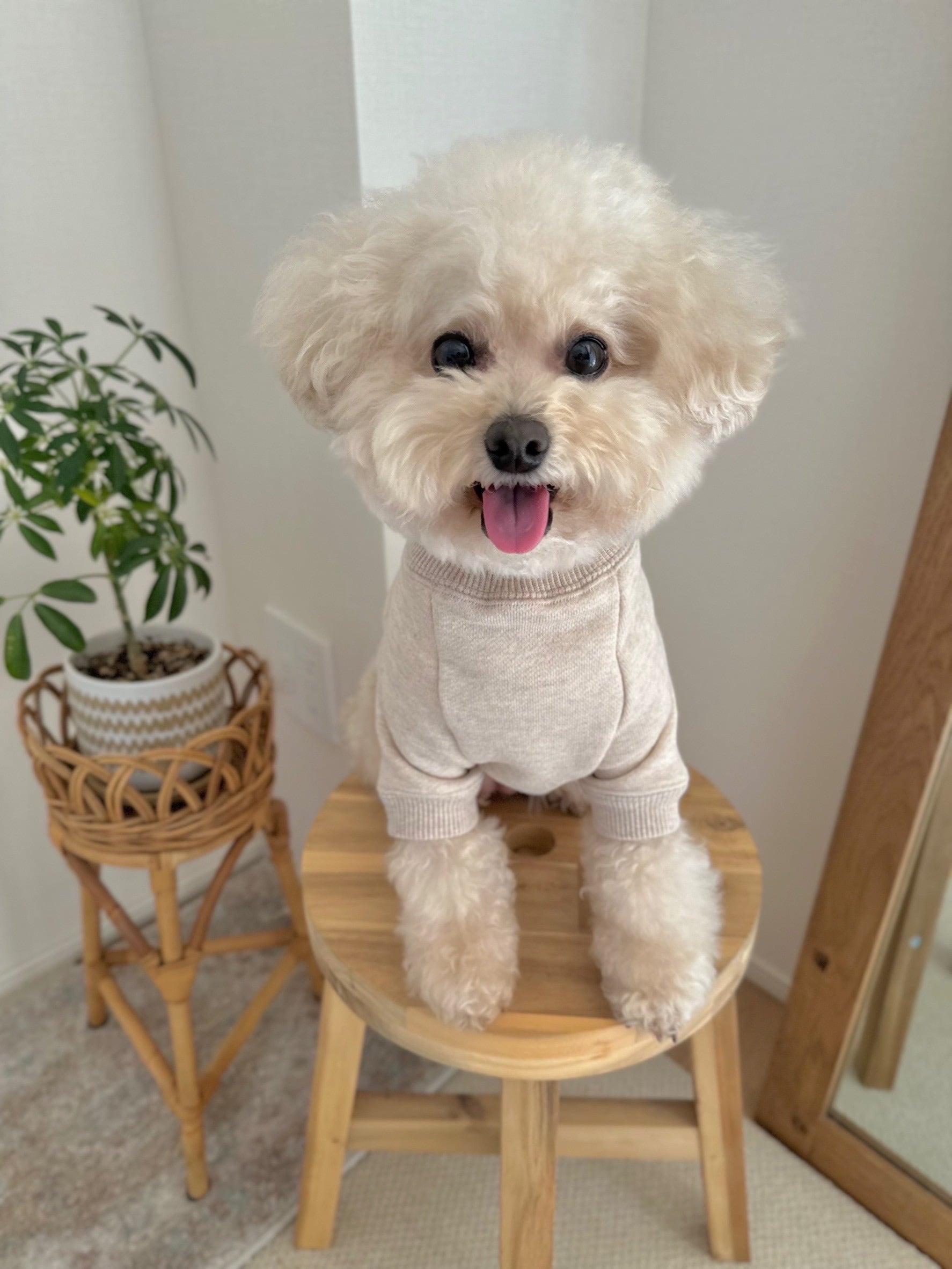 uiちゃん 首まわり29㎝ 胴まわり36㎝ 着丈29㎝ 体重3.4kg 着用サイズ S ぴったり