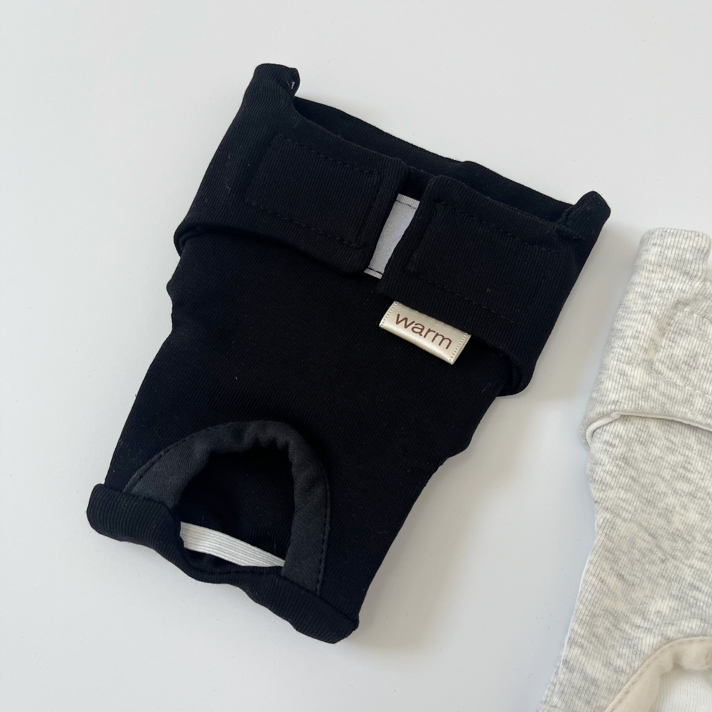 『ぱんつの中でうんちが丸まって毛が汚れてしまう』というお悩みを多く頂き、肛門周りはオープンになっています。肛門下部分の生地はわんちゃんがお尻に違和感を感じないよう、あえてパイピングを施さず生地の柔らかさを残しています。尻尾まわりのパイピングは安心のオーガニックコットンを使用。ふんわりと包み込むようなやさしいおぱんつです。