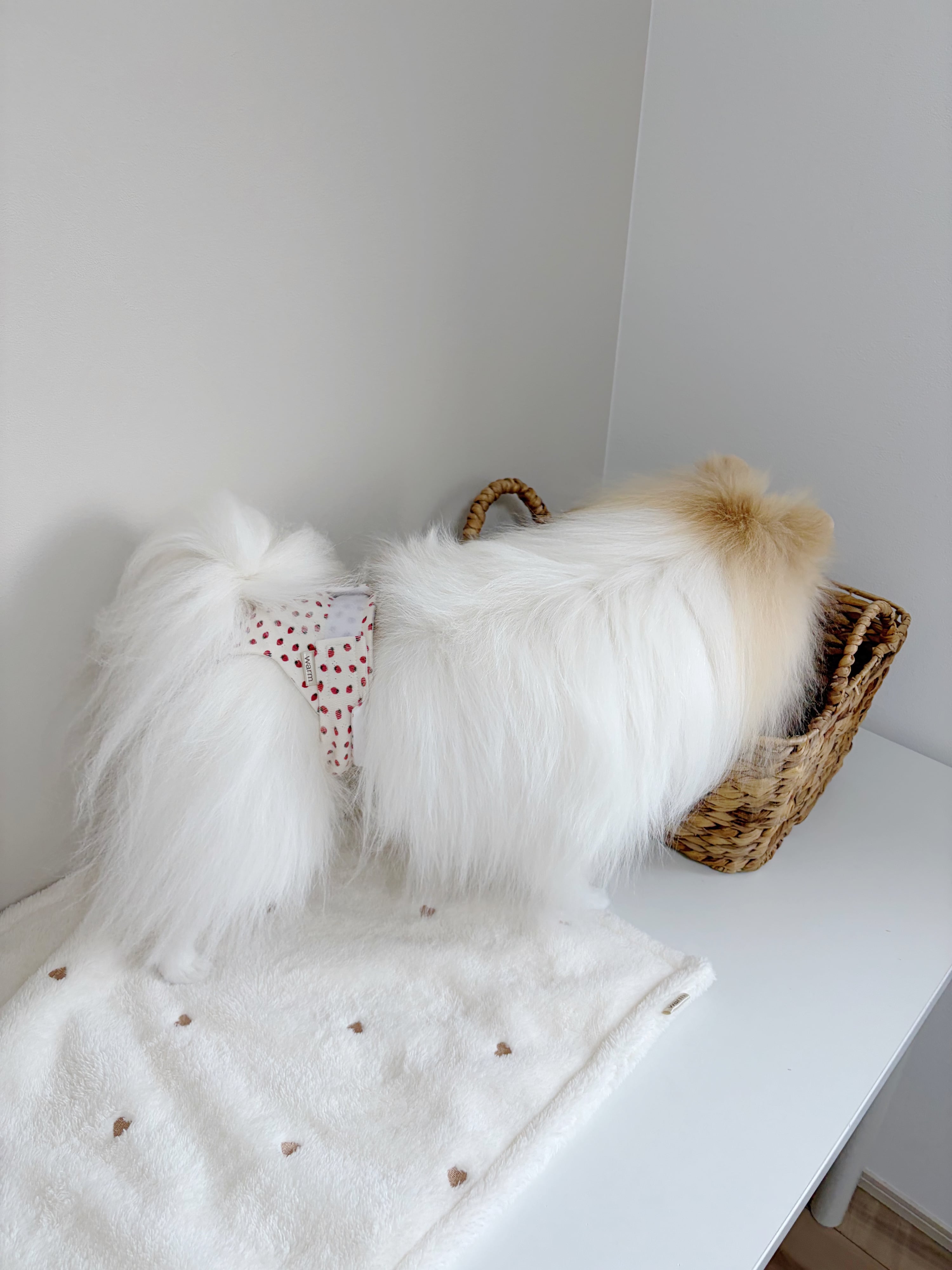 『ぱんつの中でうんちが丸まって毛が汚れてしまう』というお悩みを多く頂き、肛門周りはオープンになっています。肛門下部分の生地はわんちゃんがお尻に違和感を感じないよう、あえてパイピングを施さず生地の柔らかさを残しています。尻尾まわりのパイピングは安心のオーガニックコットンを使用。ふんわりと包み込むようなやさしいおぱんつです。