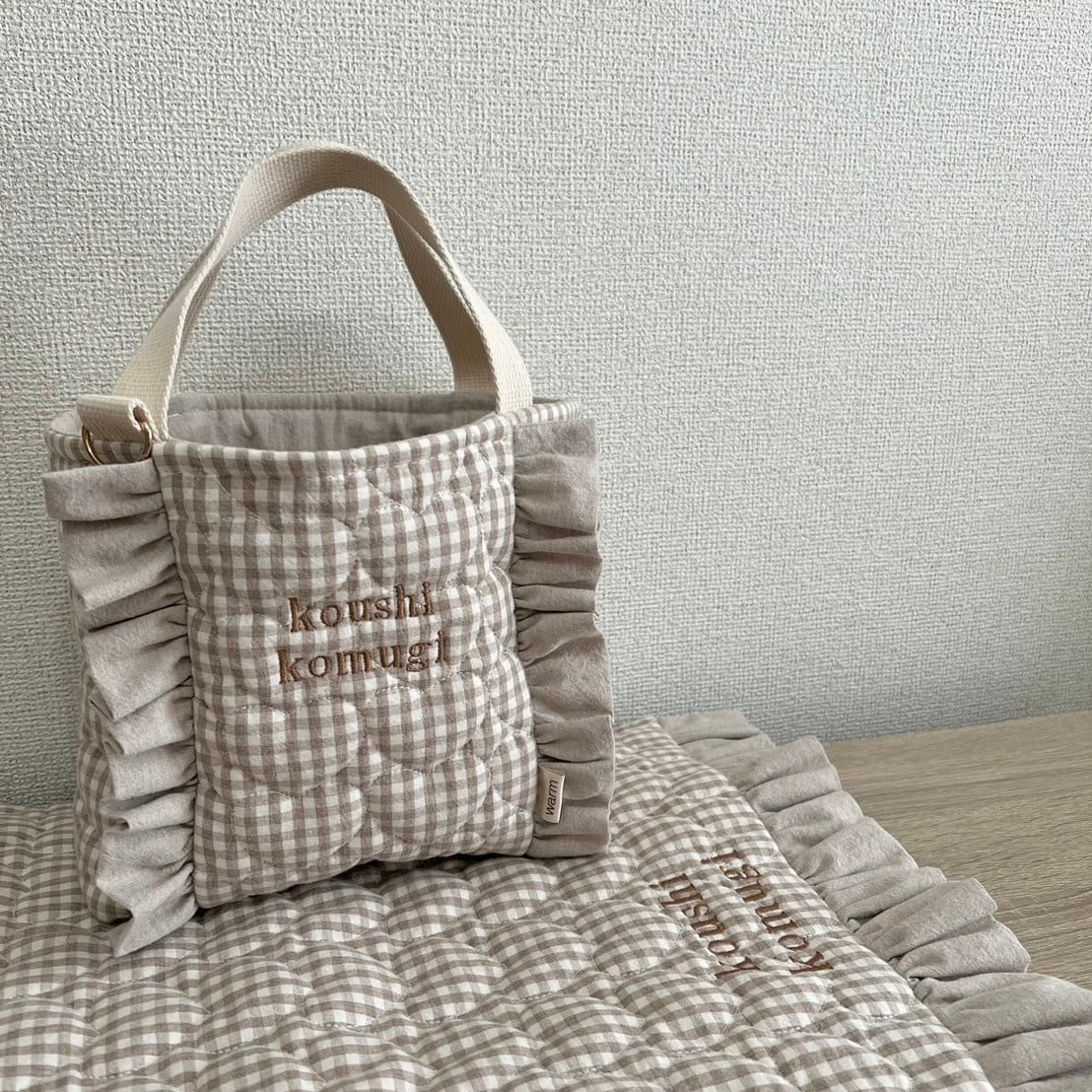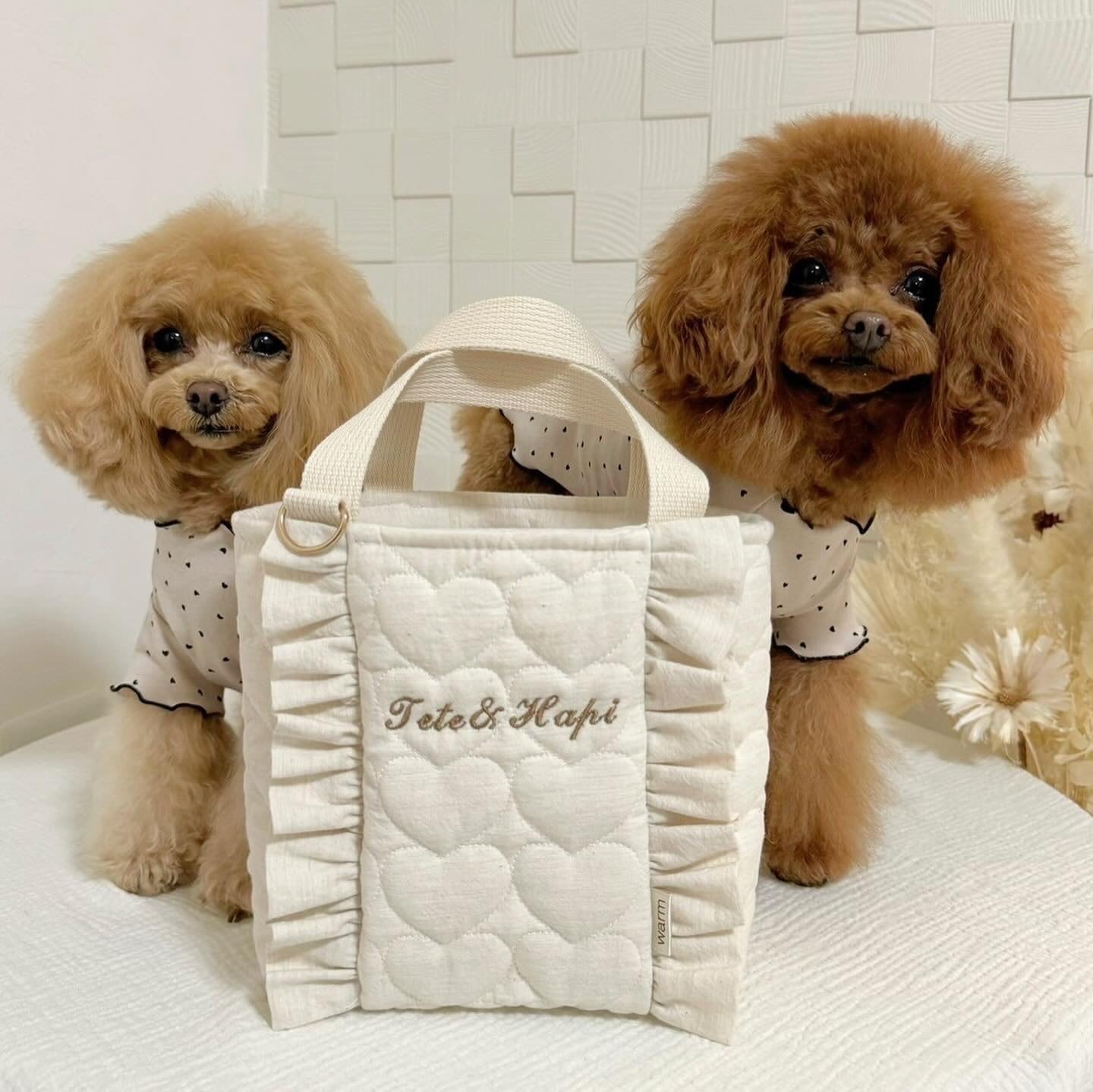 ハートキルティングカフェマットとお揃いのお散歩Bagです。